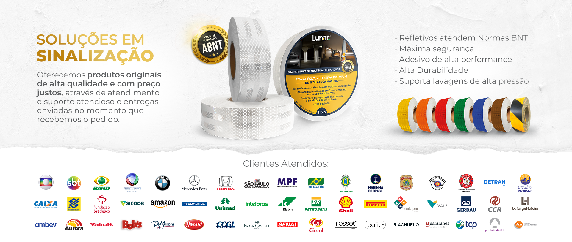 Oferecemos produtos com larguras que variam de 2,5 cm até 1,24 m e comprimentos entre 1 m e 50 m, atendendo diferentes necessidades de aplicação e personalização.